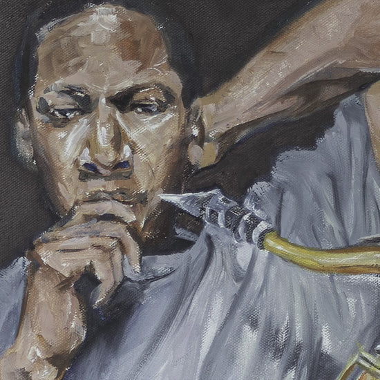 John Coltrane's music invites one into a world of deep emotion and creativity, combining skillful improvisation with spiritual exploration. I painted this portrait as a testament to his ability to blend complexity with raw feeling, making the painting inspiring to anyone who loves art and music with soul and purpose.